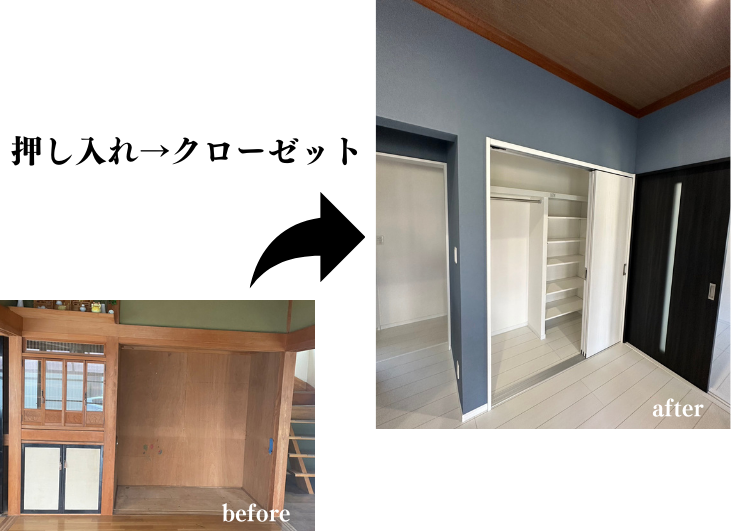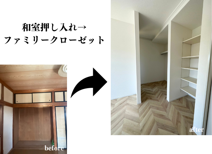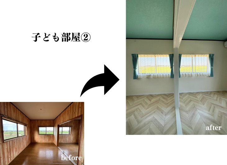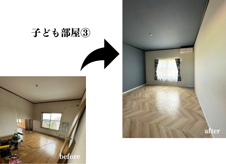 スケルトンリフォームS様邸② ⭕2F廊下 天井にカラークロスを入れ、アクセントに⭐ 青のブラインドカーテンで爽やかな印象になりました! ⭕押し入れ→書斎 子ども部屋に書斎を作り、落ち着いて勉強ができるスペースに ⭕和室→ファミリークローゼット 奥様の動線を考え洗濯物を別々のお部屋に持っていくのではなく ファミリークローゼットで一度で終わるようにご提案をさせていただきました。 お施主様ヘリンボーン柄を気に入ってくださり、2Fの各部屋に ヘリンボーンのクロスを入れおしゃれ度UP